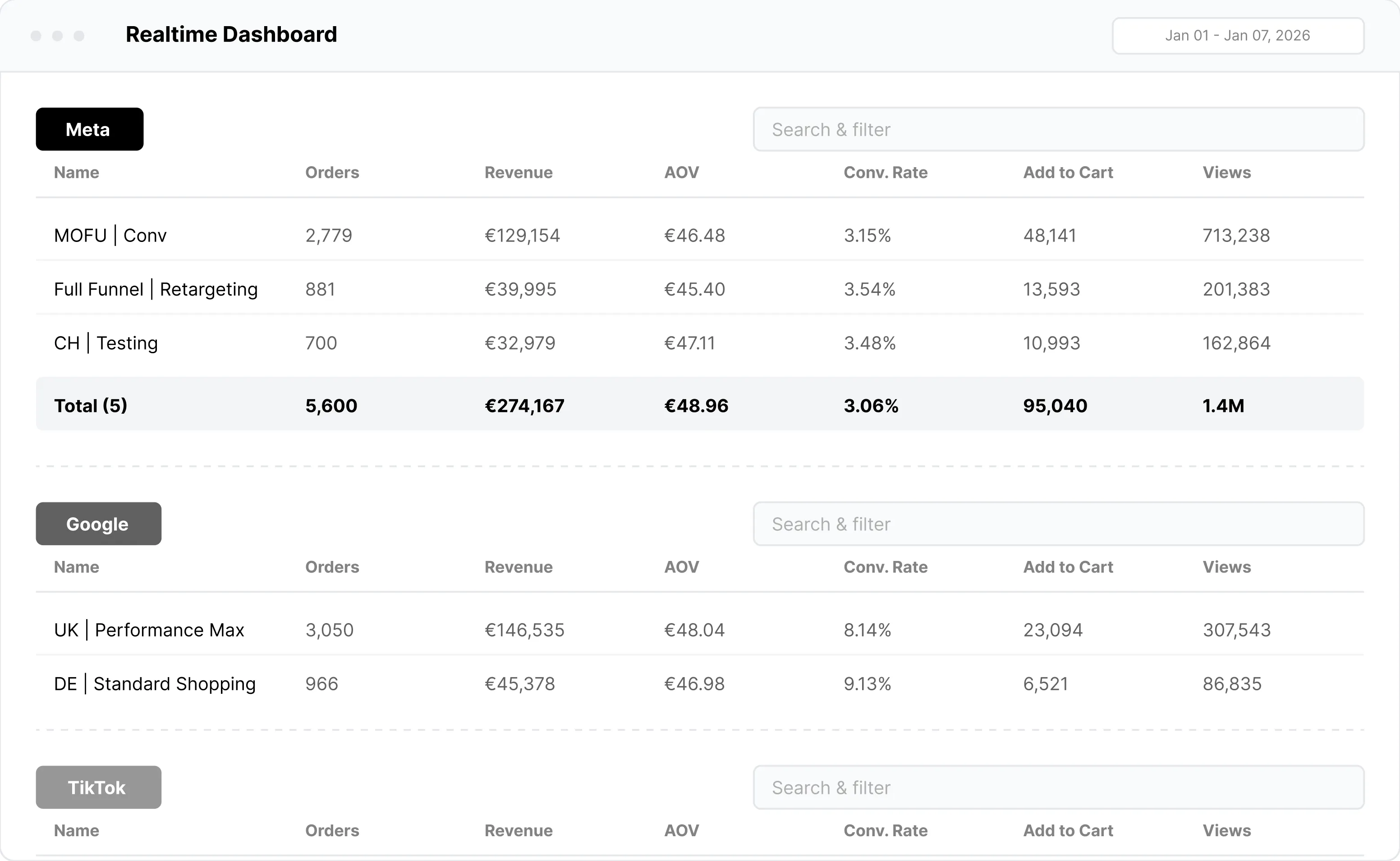 Traffic platforms aren't honest about their tracking in order to appear more attractive to advertisers. That's why experienced marketers use Tracify to efficiently optimize their budget and avoid being misled.
